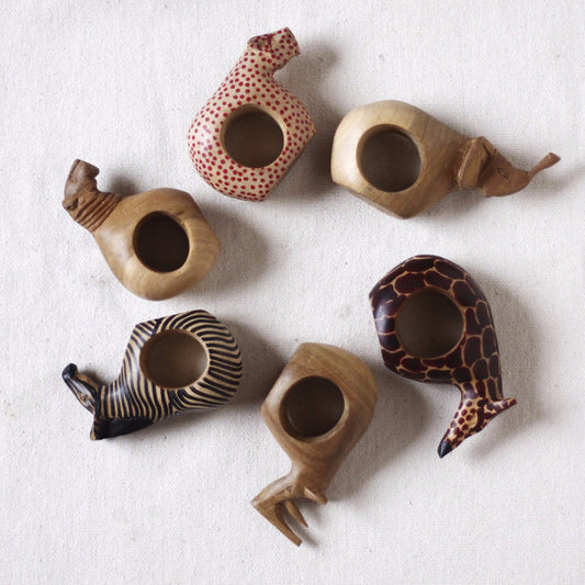 Wooden African Napkin Rings Set