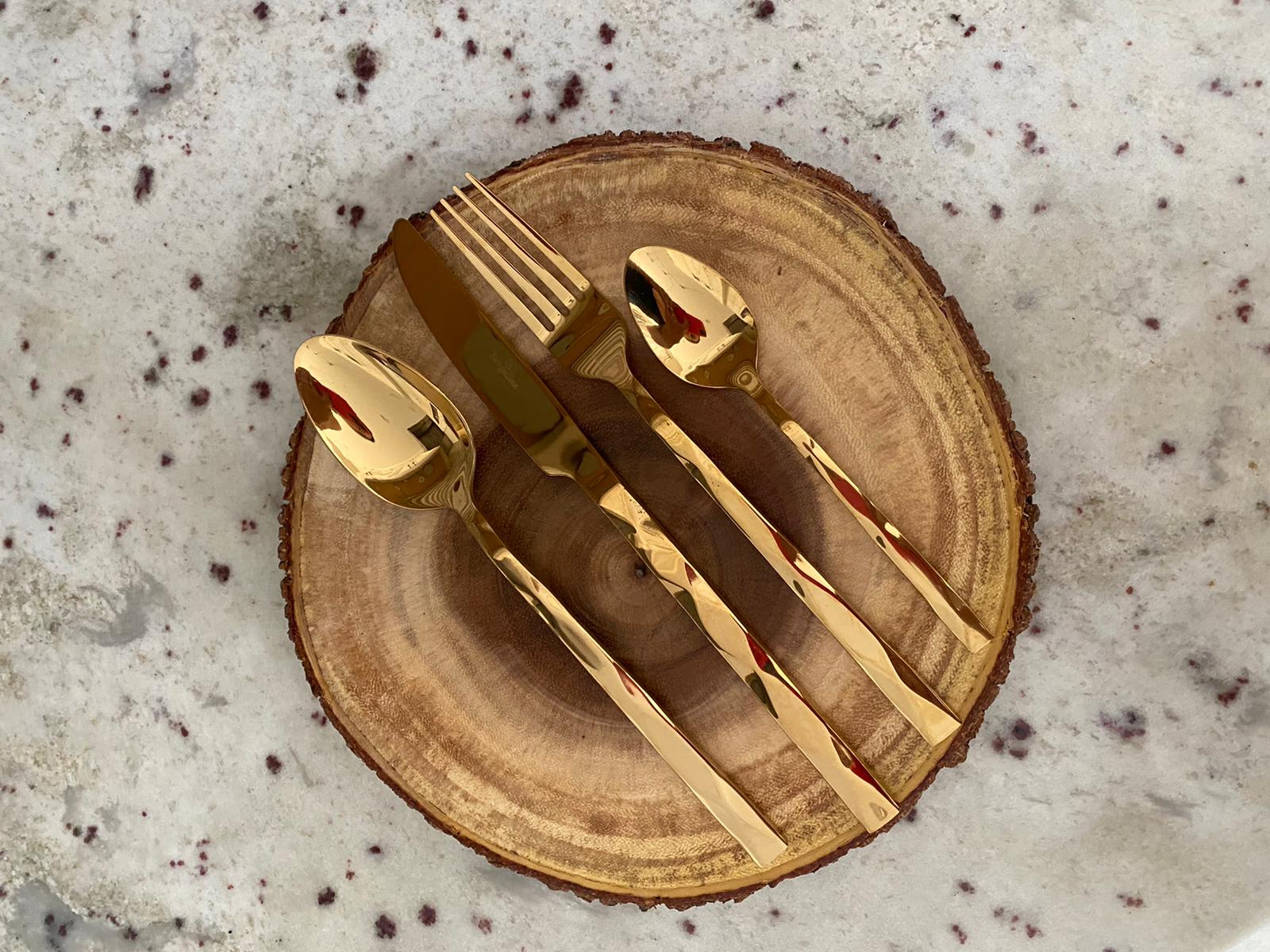 24-Piece Stainless Steel Satin Finish Cutlery Set, Gold