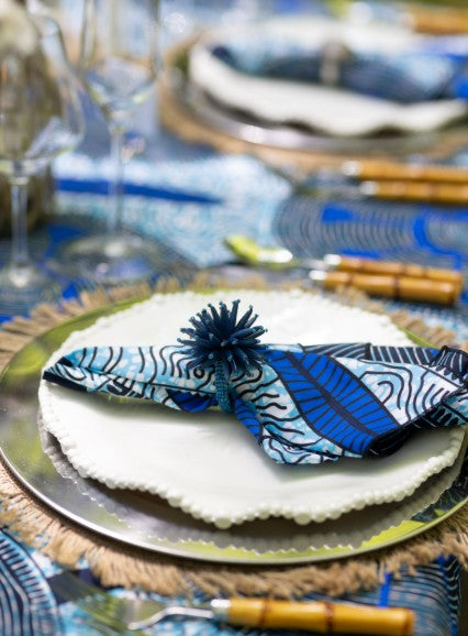 Elevate your table with this elegant set of four blue beaded napkin rings—crafted to add a refined, stylish accent to both everyday meals and special occasions.