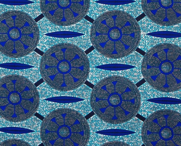 Elevate your table with the dynamic energy of our 60"x120" Blue Geometric African Wax Print Tablecloth. Featuring striking circular motifs and rich indigo accents, this tablecloth delivers a bold, modern take on traditional African design.